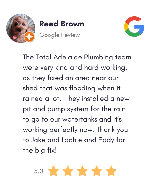 Family-owned plumbing business serving Adelaide with 31+ 5-star Google reviews and 25-year warranty on workmanship.